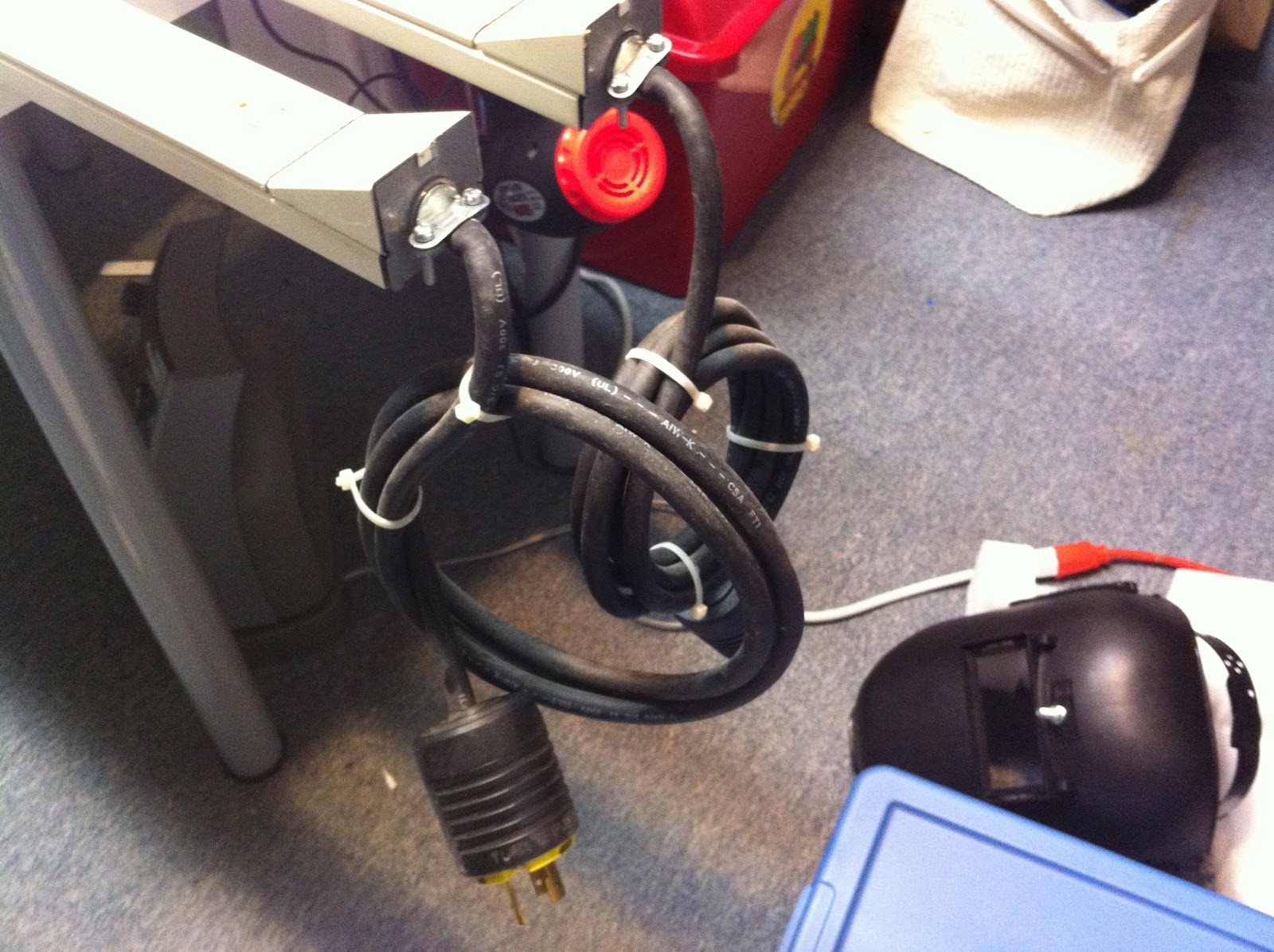 Another extension cord up high for the flourescent lamps. I took advantage of the space there for the laptop power supply as well. All that will be gone!